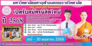 รับสมัครนิสิต “วิทยาลัยสงฆ์กำแพงเพชร” ประจำปี 2568