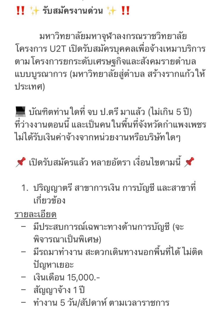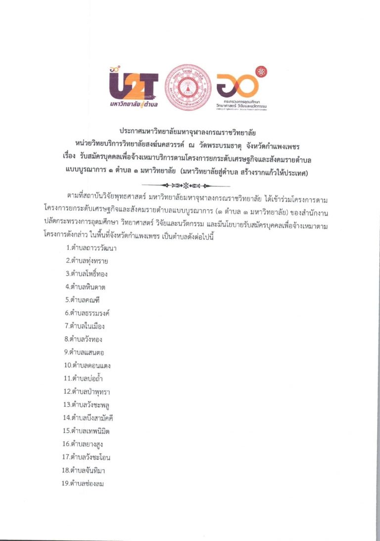 รับสมัครบุคคลเพื่อจ้างเหมาบริการตามโครงการยกระดับเศรษฐกิจและสังคมรายตำบลแบบบูรณาการ ๑ ตำบล ๑ มหาวิทยาลัย