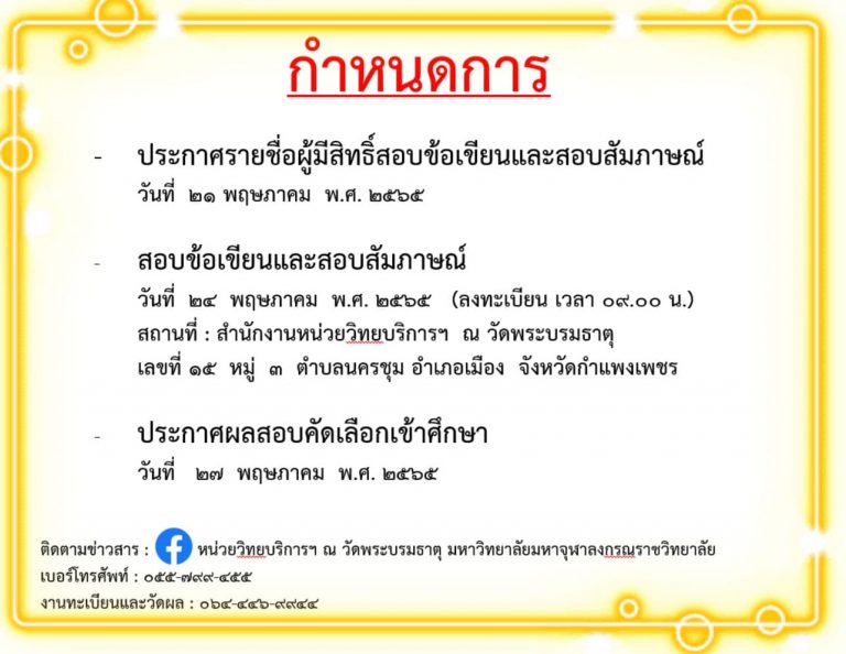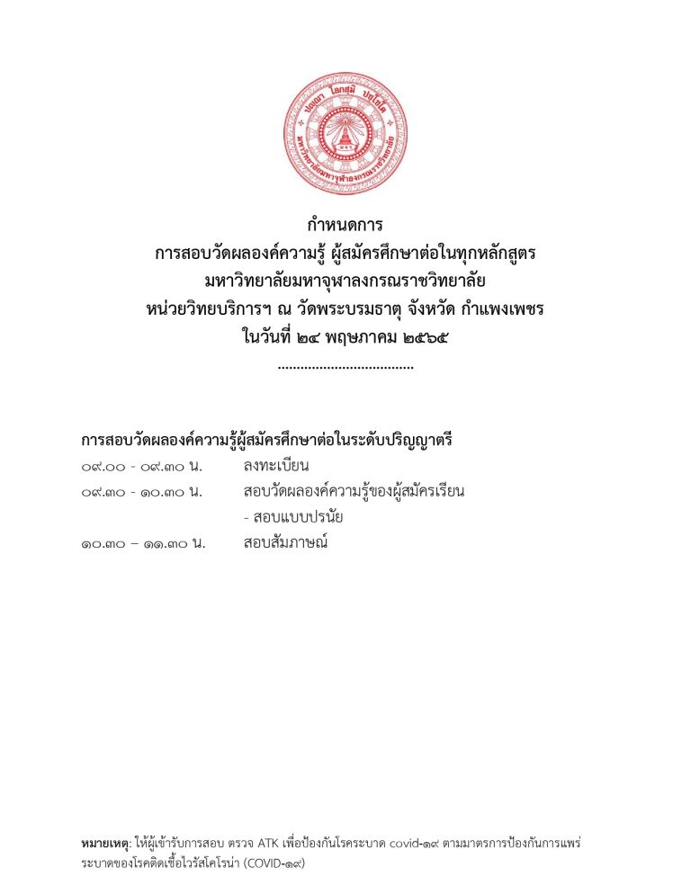 กำหนดการ สอบข้อปรนัยและสัมภาษณ์